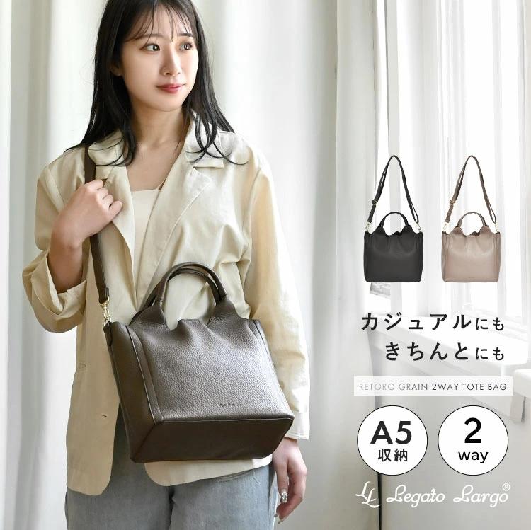 Legato Largo shoulder bag for women, 2-way, crossbody, handbag, for adults, lightweight, elegant, retro texture, square, A5 size, with gusset, stylish, cute, lightweight, for commuting, for school, for students, for working adults, for office ladies