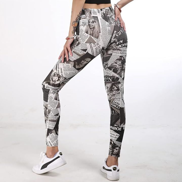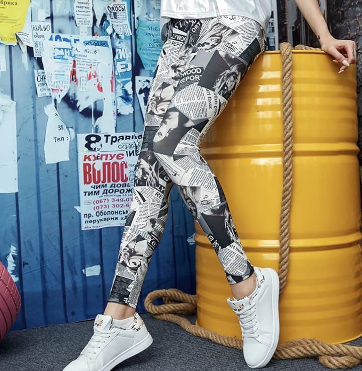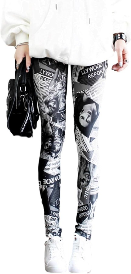 柄物のレギンスパンツは足が細く見えるので、シルエットが綺麗になります。