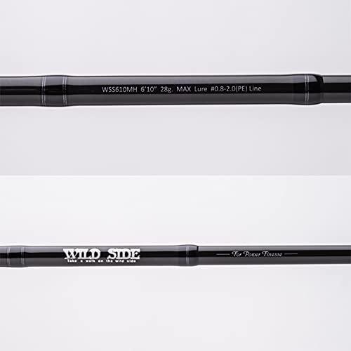 ワイルドサイドにはWSS-ST63MLというパワーフィネスロッドがある。これは操作性、キャスト精度、食わせ能力に長けた独自コンセプトのパワーフィネスロッドであった。対してこのWSS610MHは房総リザーバー発祥のパワーフィネスの王道ロッドである。長さと強さ、軽さはもちろん、障壁でもあったキャストの難易度を下げるしなやかさをも、33トンカーボンをメインマテリアルとして異弾性カーボンを適所に配し、アラミドレインフォースメントで全身補強することで実現した。竹藪や倒木、流木、ゴミだまりを撃つ、食わせる、掛ける、獲る。その目的のためのガイドセッティングであり、グリップデザインでもあるわけだが、通常のキャスト、あるいはオカッパリでのカバーや不利な足場からのパワーゲームにも対応する。このロッドの開発中に北大祐はオカッパリ対戦企画2試合をこのロッドを中心に戦っている。パワーフィネスの基本、スモラバやカバーネコはもちろん、ファットイカクラスのバルキーワームであっても使いこなせる守備範囲の広さで、難攻不落のカバーを陥落させる。