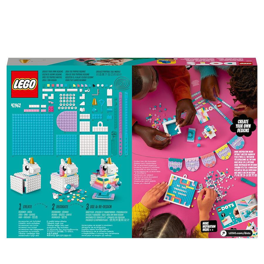 通常1-5営業日で発送【新品未開封品】レゴドッツ ファミリーパック<ユニコーン>(41962)があれば、ホームパーティーが最高に楽しくなります。ブレスレット2本、ユニコーン・ペンスタンド、メッセージボード、ガーランド、カラータイルと文字タイル3袋のセットです。お子さまはアクセサリーやルームデコを自由な発想でデコレーションし、自分らしいメッセージを発信できます。(対象年齢:6才以上)