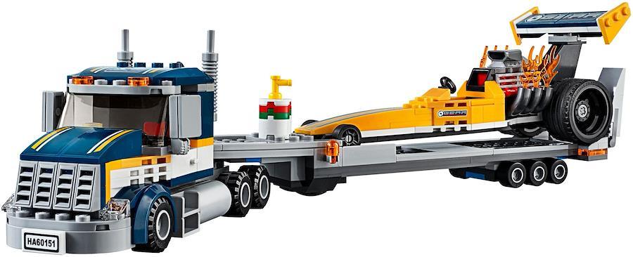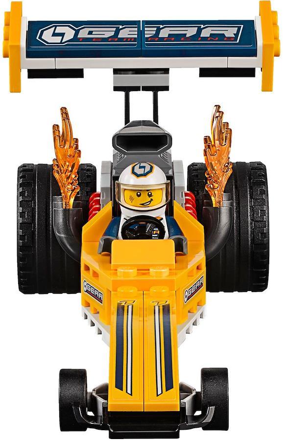 トラックとドラッグスターのドライバーのミニフィギュアーが含まれています。