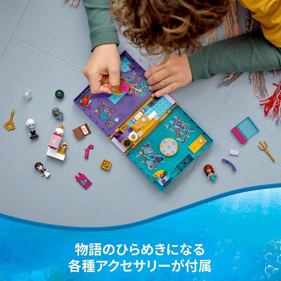 レゴ(R) | ディズニー リトル・マーメイドのプリンセスブック(43213)は、ディズニー実写映画『リトル・マーメイド』に憧れる5才以上のお子さまにおすすめです。本を開くと、折りたたみ式の貝の玉座があるアースラのかくれ家や、ヒミツの本と地図が隠されたエリック王子の書斎、回転する銅像やカギのあるアリエルの洞窟が現れます。本セットはLEGO Builderアプリに対応し、ズームや回転などの機能を使って、3D表示したモデルをチェックしながら組み立てられ、セットの情報や組み立て途中のモデルを保存できます。 いつでもどこでも遊べる カギをかけてしまえるプリンセスブックの中には、創造の可能性がたくさん詰まっています。本セットだけでも楽しく遊べますが、レゴ ? ディズニーシリーズの別売セットと組み合わせるとワクワクする想像の世界がさらに大きく広がります。 人気キャラクターたち マイクロドールフィギュア3体(アリエル、エリック王子、アースラ)とセバスチャンのフィギュアといっしょにすぐに遊び始めることができます。お子さまを驚かせるステキなギフトです。 遊びの可能性は無限大 ? レゴ | ディズニー リトル・マーメイドのプリンセスブック(43213)は、創造のひらめきを与えるギミックが満載です。(対象年齢:5才以上) セットの内容 ? 回転する銅像、開閉する貝の玉座、本と地図の隠し場所がある本箱など、遊びのアイデアを引き出す仕掛けがいっぱい。遊び終わったら、本を閉じてカギをかけられます。 キャラクターたち ? ディズニー実写映画『リトル・マーメイド』に登場するアリエル、エリック王子、アースラ、セバスチャンのフィギュアと、物語のひらめきになる各種アクセサリーが付属しています。 5才以上のお子さまへ ? 本を開くと、遊びの可能性が詰まった夢の世界が広がります。ミニサイズでも驚くようなギミックが満載です。 いつでもどこでも遊べる ? 本を開いたサイズ:(約)高さ7cm x 幅22cm x 奥行12cm。持ち運びやすいコンパクトサイズでも、冒険の可能性は無限大に広がります。 組み立て手順がひと目でわかる ? LEGO Builderアプリのズームや回転の機能を使えば、3D表示したモデルをチェックしながら組み立てを進め、作業途中のモデルを保存することができます。 重要なライフスキルの育成 ? 精巧なつくりのマイクロドールフィギュアと映画でおなじみのモデルで自由な発想の遊びを楽しみながら、重要なライフスキルが身につきます。 お姫様 おひめさま が好きな 5歳 ~ 男の子 女の子 向けのおもちゃ