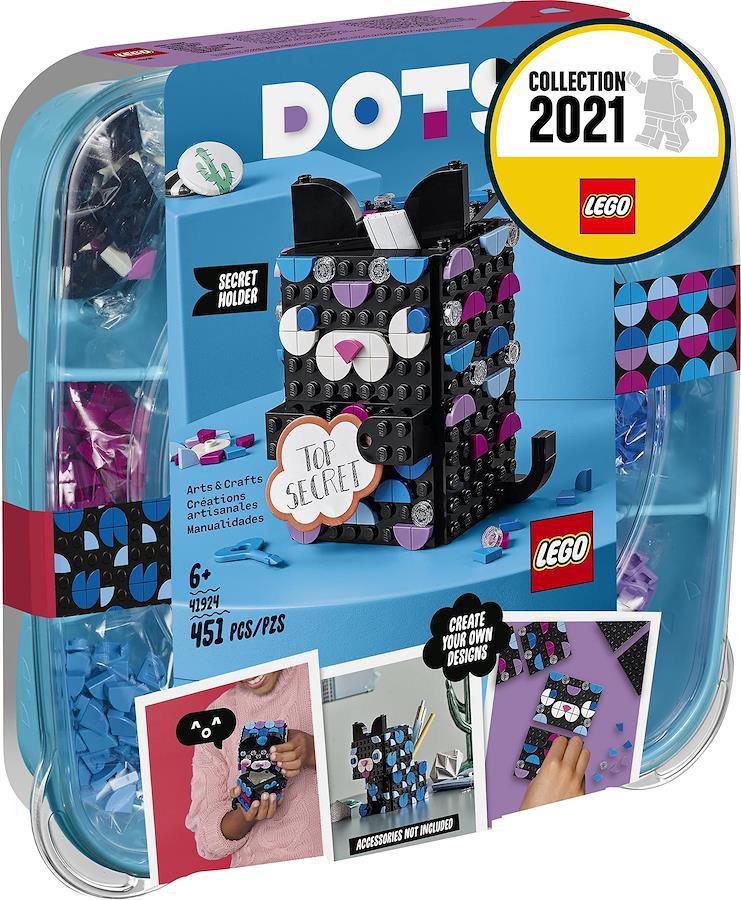 レゴドッツねこのシークレットホルダー(41924)には、2つの隠し引き出しと収納トレー、タイルが付属しています。お子さまの個性が光る! パッケージのイメージ画を参考にしたり、組み立て≪新品未開封品≫書を見ながら、思いのままにジブンだけのミラクルアレンジを楽しめます。創作をもっと楽しくするカッコかわいいタイルがいっぱい! 別売のレゴドッツタイル-シリーズ3(41921)などと組み合わせれば、ミラクルアレンジの可能性がどんどん広がります。お子さまの創作熱を高めるセットです。毎日使える便利なホルダーづくりが楽しめます。(対象年齢:6才以上)大切なものを安全にしまえる手頃なサイズ(高さ約12cm×幅約7cm×奥行約7cm)です。シークレットホルダーの組み立ては、まずトレーを開けるところから。わかりやすい組み立て≪新品未開封品≫書付きで、すばやく組み立てられ、付属のトレーを使えば、お片付けもカンタンです。毎日使えるアイテムをつくれるレゴドッツ。ネコをデザインしたシークレットホルダーを組み立て、自由な発想で飾り付けながら、創造力と自信が自然に身に付きます。レゴドッツシリーズは、ジュエリーやルームデコの組み立てを通じて、創造する力と自己表現の大切さを伝える新しい遊びの形です。レゴ組み立てパーツは、1958年以来、最高の業界基準を満たしています。品質にむらがなく、別のセットと組み合わせても、いつでも簡単に組み立てと取り外しができます。レゴブロックや組み立てパーツには、厳正な品質試験を実施し、最高水準の国際安全基準を満たすことを確認しています。