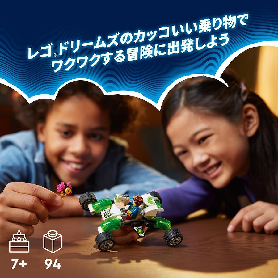 レゴ(R)ドリームズ マテオのオフロードカー(71471)の行く手には、冒険いっぱいのドリームワールドが待っている!人気アニメシリーズでおなじみのマテオとズィーブロブが、盗まれた砂時計を探しているよ。バギーかマルチコプターを組み立ててマテオたちに力を貸そう。 (対象年齢:7才以上) 組み立てる乗り物を選び、思いのままの冒険物語を創り出せる組み立てセットです。車輪が回転し、どんなデコボコ道もへっちゃらなバギーか、パワフルなリアエンジンが付いたマルチコプターを組み立てられます。 モデルを組み立て終わったら、おなじみのキャラクターたちと楽しいドリームチェイサーごっこのはじまりです。本物そっくりのマテオのミニフィギュアはシューター付き。その他にも、グリムスポーンとマテオの相棒ズィーブロブが、夢の冒険を盛り上げます。