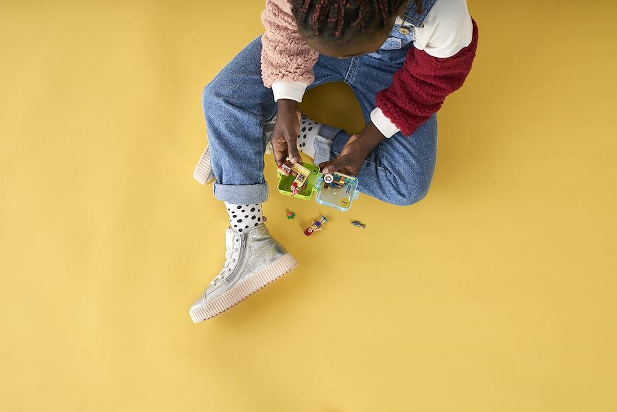 モデルはキューブから取り出して遊べ、お出かけの時は全部しまって持ち運べます。キュービーズを集めて、キューブ同士を重ねたりくっつけたりすれば、楽しいディスプレイが楽しめます。また、キューブは2つに分けることもでき、お友だちと半分こして遊ぶこともできます。