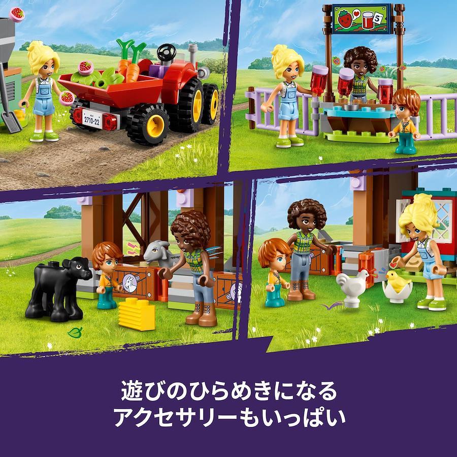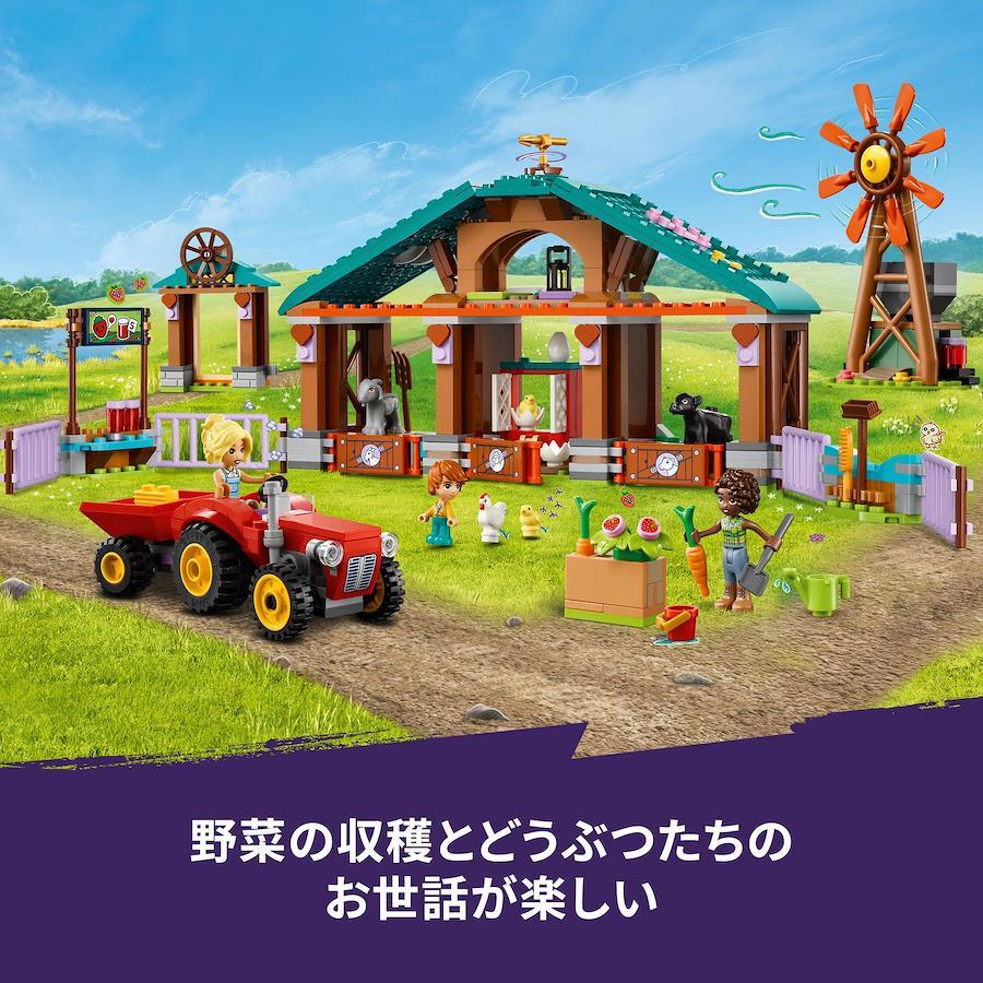 牧場の仕事をしよう - レゴフレンズのキャラクターを使ったごっこ遊びを通じて、野菜の収穫やどうぶつの世話、イチゴジャム作りを疑似体験できます
