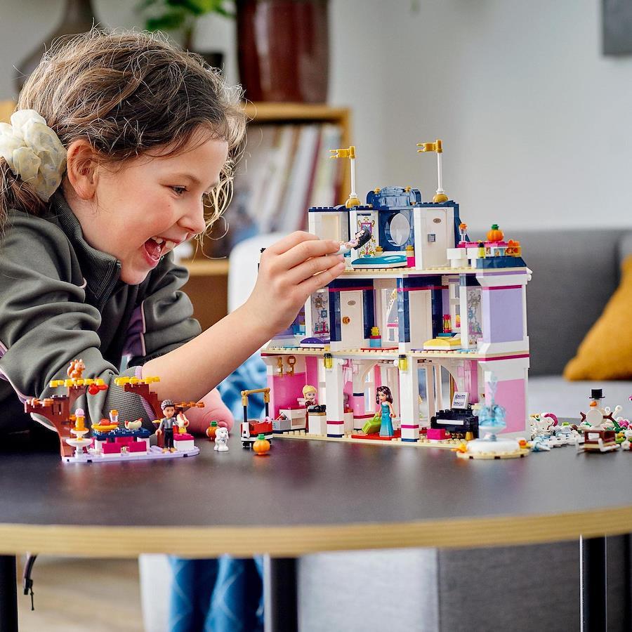 レゴフレンズ ハートレイクシティグランドホテルセットには3階建て5部屋付きのペルシャ風のおもちゃドールハウスに季節ごとのアイテムが完備されています。