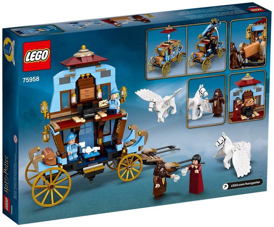 翼のある馬に引かれたボーバトンの馬車が、ホグワーツを目指して空に舞い上がるぞ。映画『ハリー・ポッターと炎のゴブレット』の名シーンを再現して、ハグリッドと一緒に空飛ぶ馬車を誘導して安全に着地させよう。このセットは休憩室がついた2階建ての寝室に組み替えることができるよ。マダム・マクシームとフラー・デラクール、ガブリエル・デラクールの3人と一緒にお茶を飲みながら魔法界の冒険を計画してね。馬たちに餌をあげるのも忘れずにね。翼や脚、頭のポーズを戻してあげれば、次の飛行の準備は完璧だ!