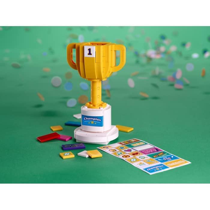 カラフルなレゴ アイコニック トロフィー(40385)で表彰しよう。付属のパーツやステッカーで目的に合わせてトロフィーをデコレーションできるよ。競技大会用にはスポーツシンボルのステッカーを貼ろう。お子さまやレゴファンへのお誕生日プレゼントやごほうびにすれば、もらった人は勝者の気分を味わえるはず。