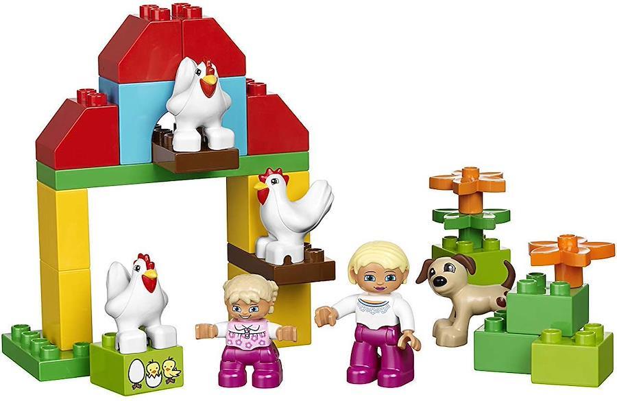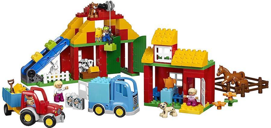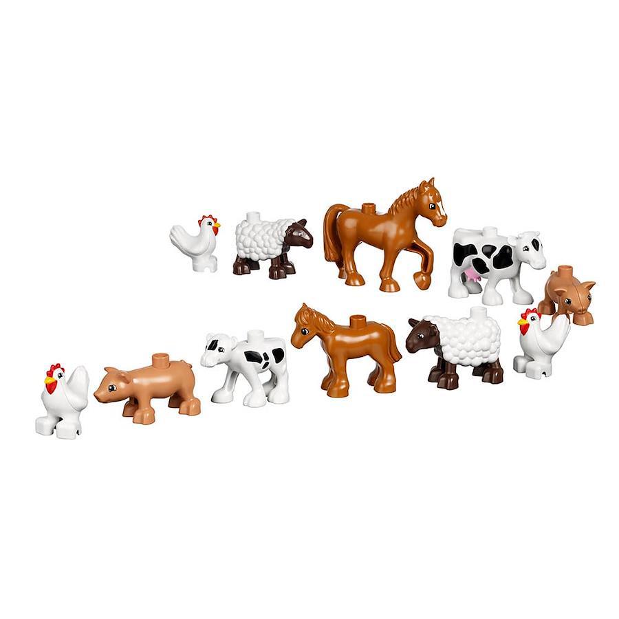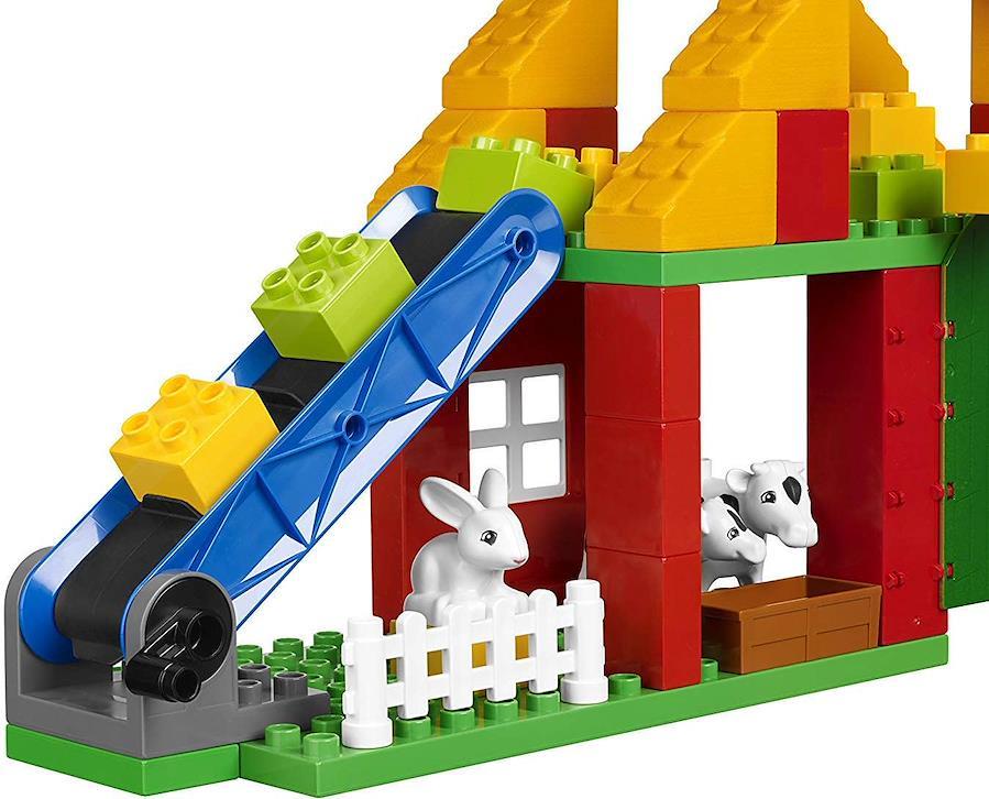 納屋付きの家、トラクターに加え、たくさんの動物たち、とうもろこし、にんじんなど楽しいパーツがたくさん入っています。