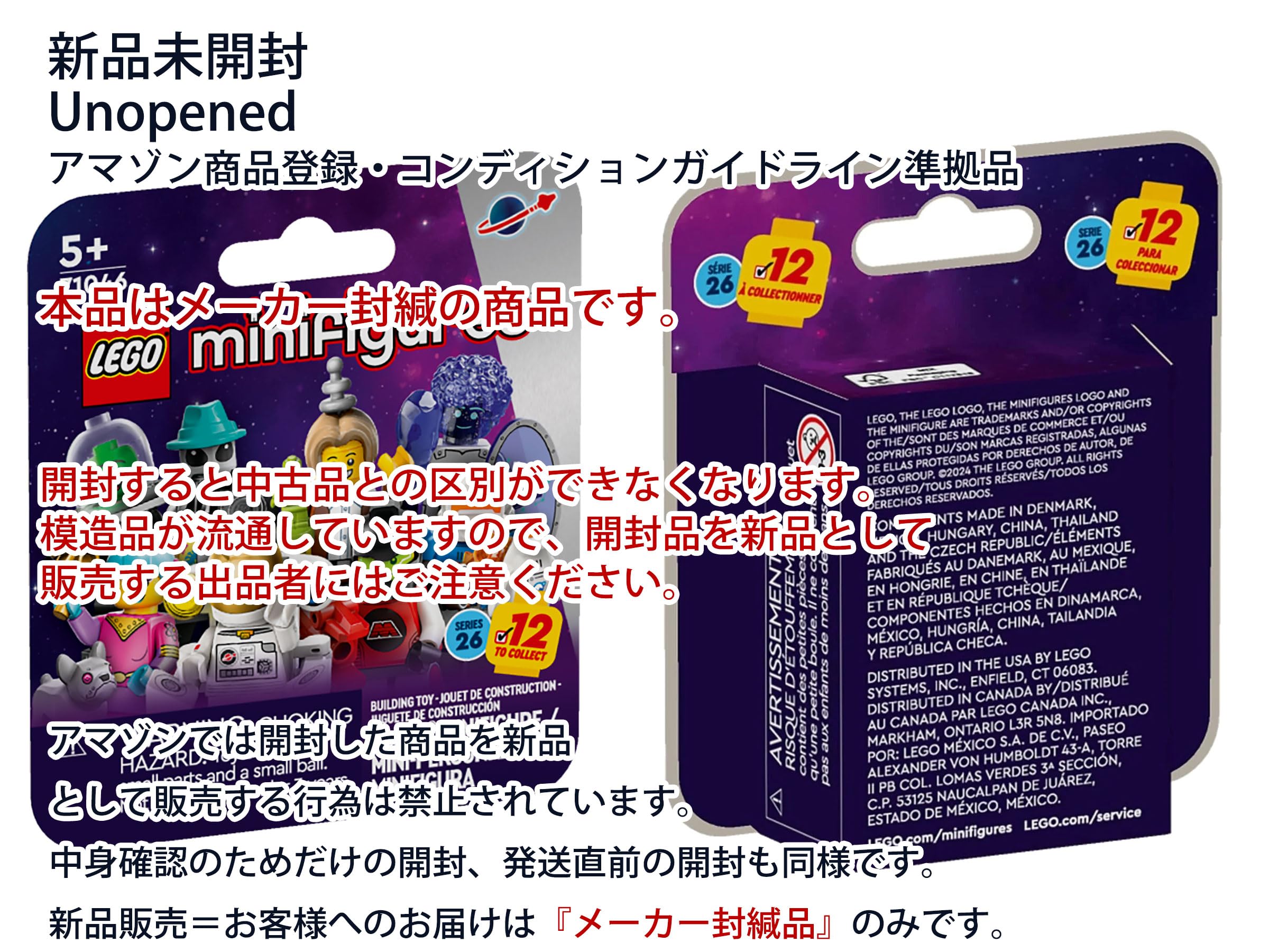 【未開封・メーカー封緘品】 レゴ社封緘の箱に1体の組み立てに必要なパーツ、アクセサリ、≪新品未開封品≫書が入っています。本品は全12種類からの1種類のみです。メイン画像をご確認の上、お買い求めください。【ご注意】 サブ画像をご確認ください。【全12種】レゴ ミニフィギュア シリーズ26は全12種類です。商品はメイン画像のキャラクター1体のみです。欲しいキャラクターだけをゲットしましょう。サブ画像のミニフィグは過去に発売のシリーズで本品の用途や他との組み合わせ例を示しています。サブ画像のミニフィグは商品に含まれません。