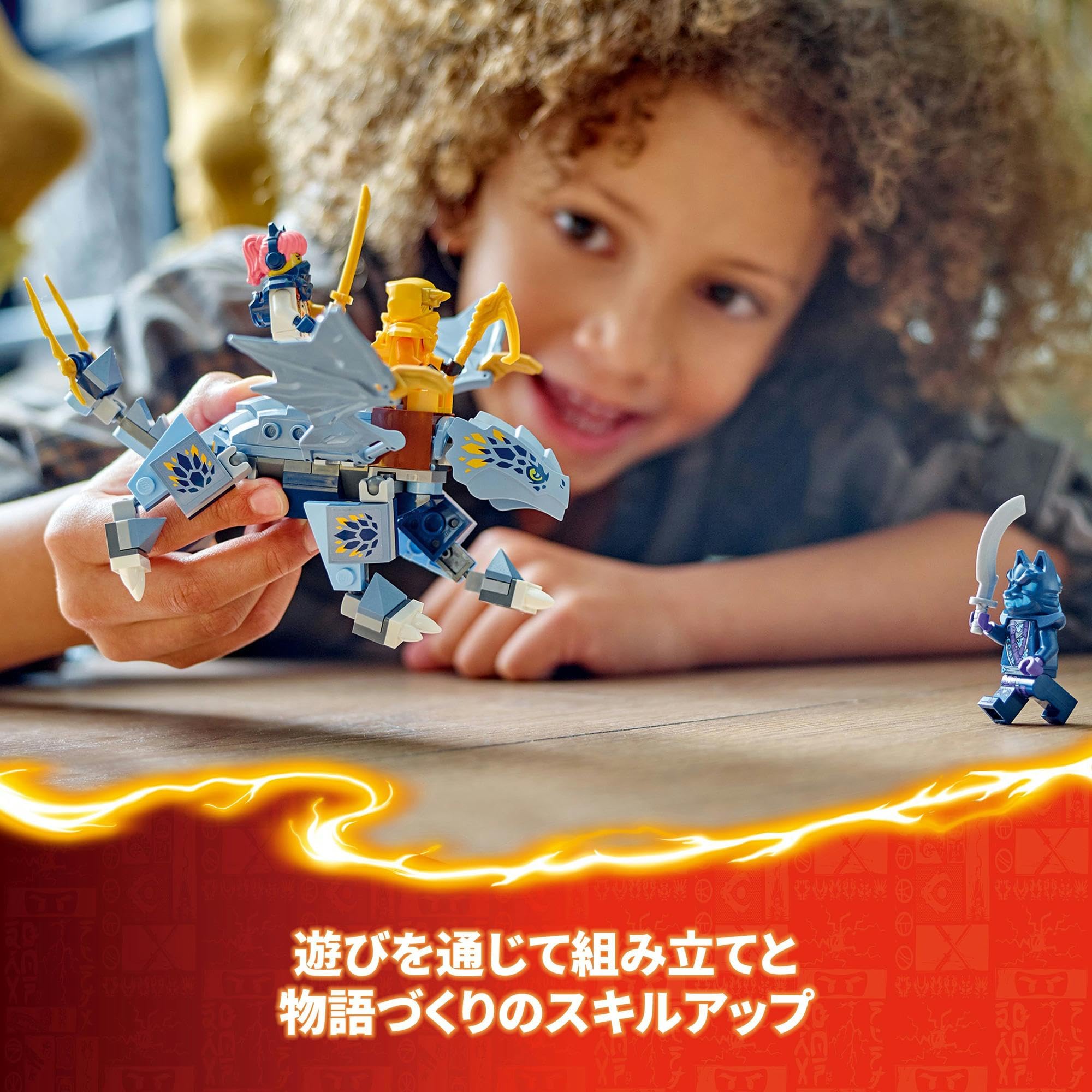 ドラゴン リュウ(71810)は、アニメ『ニンジャゴー(R) ドラゴンライジング』シーズン2の大空の冒険を再現できる組み立てセットです。翼と脚や尾が動くアクションフィギュアのリュウにサドルを取り付け、ミニフィギュアを乗せて遊べます。(対象年齢:6才以上) フックや剣のアクセサリーが付いたミニフィギュア3体(エリン、ソラ、オオカミマスク・ウォリアー)を使い、ニンジャになりきってアクション満載のごっこ遊びを楽しめます。 レゴ(R)ニンジャゴーシリーズには、メカスーツ、のりもの、道場をはじめ、リアルなニンジャごっこを楽しめるセットが揃っています(各セット別売)。また、組み立て手順がひと目でわかるLEGO Builderアプリは、お子さまとの組み立て遊びをさらに楽しくする頼もしい助っ人です。
