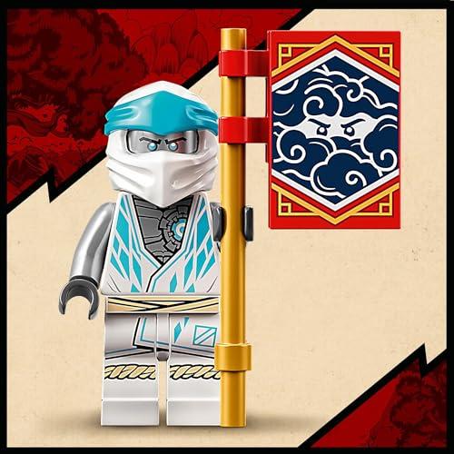 パワーアップ・メカスーツ EVOに乗り込んだゼンと、危険なコブラ・メカニックに立ち向かえ!敵のブラスターガンには要注意。パワーアップしたゼンとメカスーツが、刀とスピニング・スターを武器に戦う。戦いの勝者は、コレクターズアイテムの忍びのバナーを手に入れることができるよ。