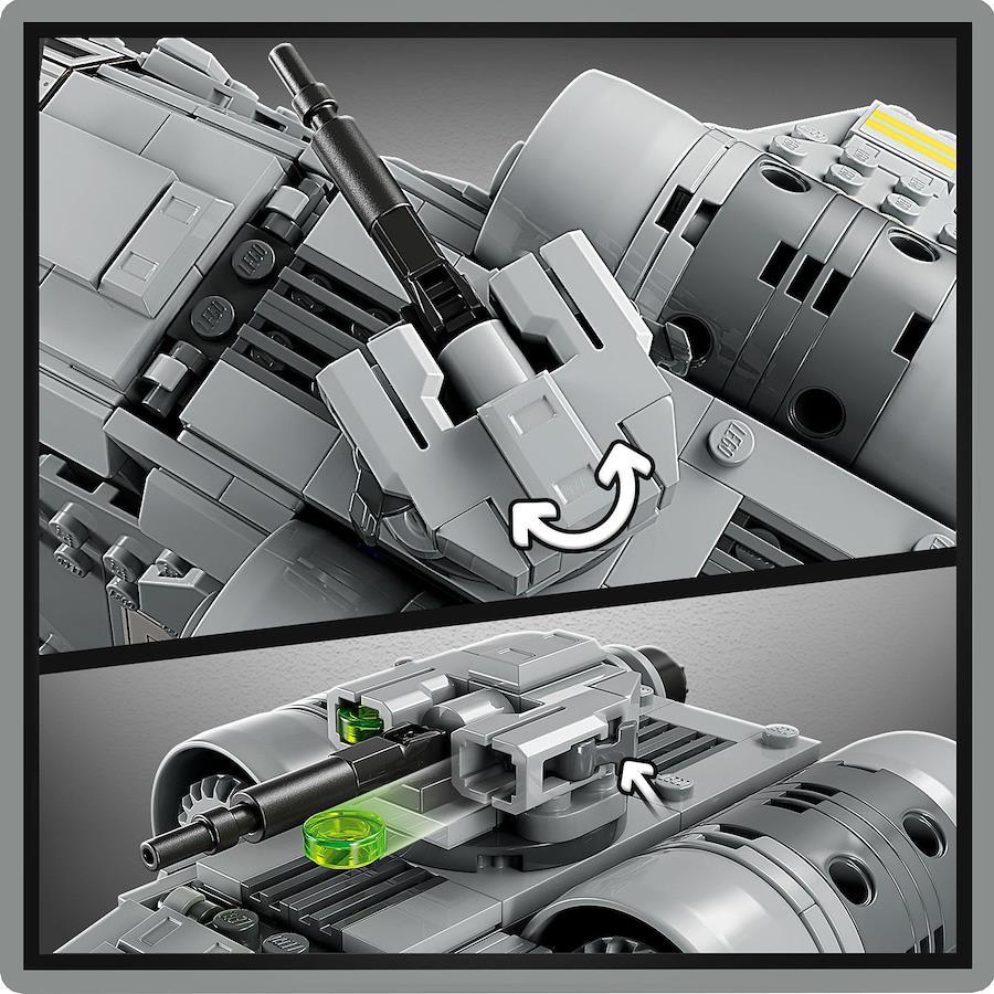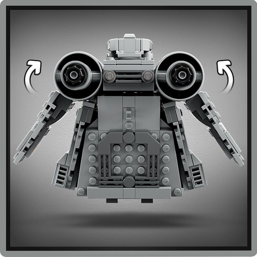 攻撃ポッド - ポッドを上と横から開き、操縦席、ミニフィギュア5体分のスペース、調節可能なウィング、回転式Wスタッドシューター、リアタラップなど、内部のディテールをチェック