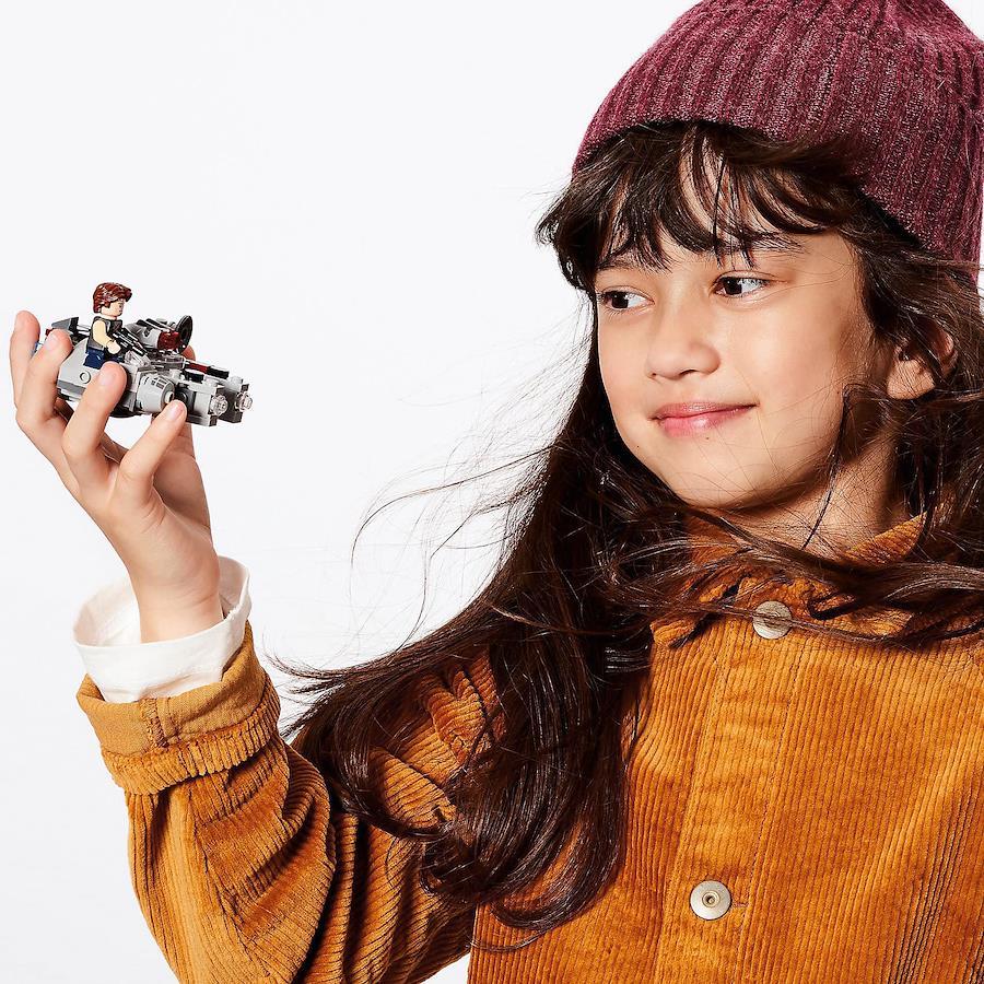 カッコいいミレニアム・ファルコンを組み立てて、ハン・ソロと一緒に命がけのミッションへ出発しよう!コックピットに乗り込んで、さあ宇宙へ。帝国軍の宇宙船にスタッドシューターを発射!ハン・ソロのブラスター・ピストルで敵の攻撃をかわそう。ハイパードライブをオンにして、超高速で安全圏まで脱出だ!