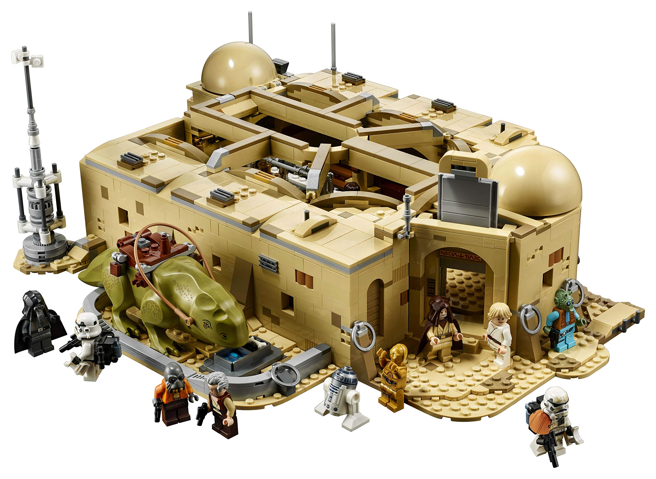 映画『スター・ウォーズ:新たなる希望』に登場するモス・アイズリー・カンティーナを細やかに再現した本格モデルの組み立てに没頭して、至福のリラックスタイムを過ごそう。屋根を取り外すことができ、内部のディテールをお楽しみいただけます。周囲の建てものとランドスピーダー2台、デューバックのフィギュアを付きで、壮観なディスプレイが完成します。さらに、映画に登場するヒーローたちやバウンティハンター、エイリアンなどのミニフィグを使って、惑星タトゥイーンの有名な酒場のシーンを再現しよう!