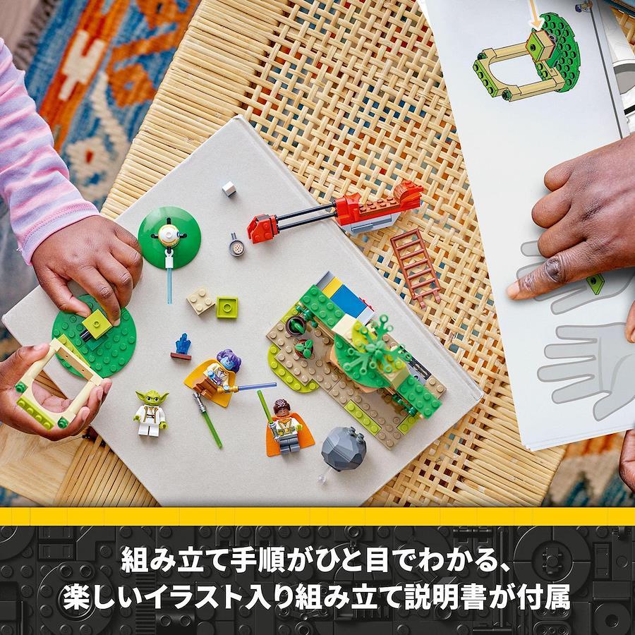 岩を浮遊させる機能をはじめ、楽しいギミックが満載のテヌーのジェダイ・テンプル(75358)は、はじめてのレゴ(R)スター・ウォーズ セットにぴったりです。トレーニング・ドロイドやバランス感覚のテスト、スピーダーバイクなどが付属し、スター・ウォーズファンが夢中になること間違いなし。さらに、2023年6月初登場の「リス・ソレイ」と「カイ・ブライトスター」のほか、「マスター・ヨーダ」のミニフィギュアがごっこ遊びを盛りあげます。 楽しい組み立て遊び 読み書きを始めたばかりのお子さまでもひと目でわかるイラスト入りの組み立て≪新品未開封品≫書が付属しています。さらに、本セットはLEGO(R) Builderアプリに対応し、ズームや回転の機能を使って3Dモデルをチェックしながら組み立てられます。 年齢に合わせた知育遊び レゴ スター・ウォーズ 4+セットは、大きめの基礎ブロックを使って、レゴ初心者でもひとりで簡単に乗り物や建物を組み立てられます。ご家族みんなでアイデアを出し合って楽しく遊びましょう。