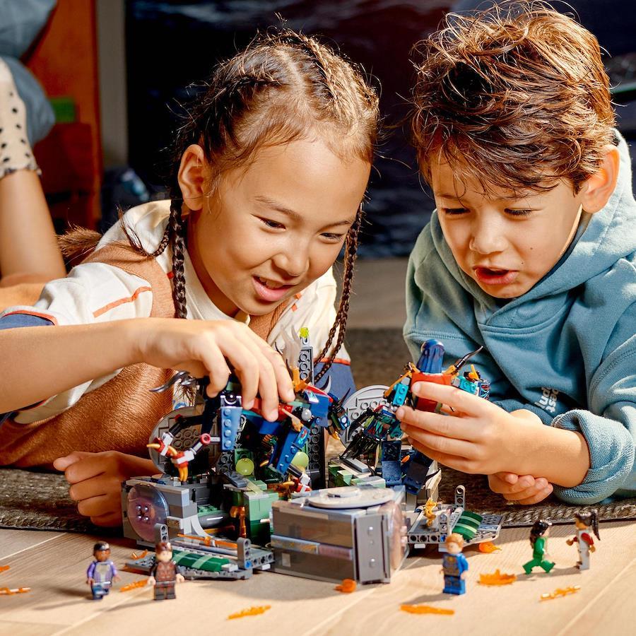 マッカリ、イカリス、セナ、セルシ、ドルイグ、ファストスと一緒にエターナルズの宇宙船探索に出かけよう。側面を開けば内部にアクセス可能!コックピット、武器庫、ラボのディテールをチェックしよう。でも、ディヴィアンツのリーダーたちがやってきたら、宇宙船を操縦して戦いに挑め!ドルイグとファストスのミニフィグが入った唯一のプレイセットは、コレクターのマストアイテム!
