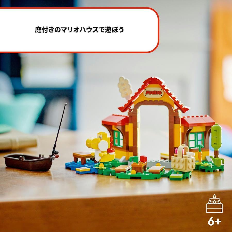 レゴ(R)スーパーマリオ 「マリオハウス で ピクニック(71422)」があれば、コースづくりがもっと楽しくなる!ブロックで組み立てたお庭付きのマリオの家で、別売のレゴ(R)マリオ、レゴ(R)ルイージ、またはレゴ(R)ピーチといっしょに、まずはきいろヨッシーにご挨拶。バスケットに入ったクッキーを食べることもできます。そのほかにも、ベッドでお昼寝したり、庭に植えられた野菜に水やりをしたり、ホッケーや魚釣りをしたりと、いろんな遊びやコイン集めが楽しめます。本セットで遊ぶには、別売のスターターセット(71360、71387または71403)が必要です。 よろこばれるギフト 流行に敏感なお子さまへのプレゼントに最適です。組み立て説明書や、楽しくてクリエイティブなコース作りと遊びのアイデアがいっぱいのレゴ(R)スーパーマリオ アプリをダウンロードすれば、さらに充実した遊び体験を楽しめます。(対象年齢:6才以上) 可能性は無限大 レゴ(R)スーパーマリオ シリーズのスターターセットと拡張セットを組み合わせて、組み立てたり作りかえたりすれば、世界にたったひとつのコースでコイン集めを楽しめます。 マリオハウス で ピクニック(71422) ? ブロックでマリオの家を組み立てて、ごっこ遊びやコイン集めを楽しめる拡張セットです フィギュア1体が付属 ? きいろヨッシーのフィギュアが付いていて、別売のレゴマリオ、レゴルイージ、またはレゴピーチが挨拶できます 楽しいギミック満載 ? レゴマリオ がお昼寝するベッドやおやつの入ったバスケット、野菜に水やりができる庭、ホッケーのゴール代わりにもできるテーブルなどが入っています。 魚を釣ろう ? レゴマリオ をボートに乗せるとおなかのスクリーンに釣りざおが現れます。ボートを動かしながらフィギュアを上下に動かすと、釣れた魚がおなかのスクリーンに表示されます 6才以上のお子さまへ ? レゴスーパーマリオ スターターセット(71360、71387または71403)をお持ちのお子さまへのプレゼントにぴったりな259ピースセットです 組み替えや組み合わせが自由自在 ? サイズ(基本形):(約)高さ14cm x 幅24cm x 奥行20cm。レゴスーパーマリオ シリーズの別売セットとの相性もバツグンです コンパニオンアプリ ? レゴスーパーマリオ アプリには組み立て説明書や、楽しくてクリエイティブなコース作りと遊びのアイデアがいっぱい。AndroidまたはiOSのアプリ対応機種は、LEGO.com/devicecheckでご確認ください