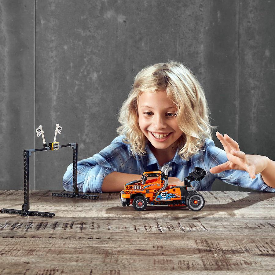 このパワフルなレーシングトラックは2-in-1デザインなので、カッコいいレーサーに組み替えることもできます。今日もチャンピオンを目指そう。お子さまが簡単に遊べるプルバック式のモデルで、レース遊びを楽しめます。レーシングトラック(42104)を楽しく組み立てながら、問題解決能力の発達を促し、想像力を刺激するごっこ遊びにも適合なセットです。組み立てて、レースして、組み替えもできる2-in-1モデルで楽しさも2倍です。後ろに引いて手を離すと動き出す、シンプルなプルバック式で、小さなお子さまでもレースのスリルとスピードを楽しく遊べます。太い排気管や大きなスポイラー、鮮やかなカラーのレーストラックは、クルマが大好きなお子さまにぴったりです。走らせて遊ぶことができるレーストラックは、乗りもの好きのお子さまへのプレゼントにもぴったりです(対象年齢:7才以上)。電池は不要です。組み立ててすぐに遊ぶことができ、電池切れに中断されることもありません。分かりやすい≪新品未開封品≫書が付属しているほか、オンラインからPDF版も利用いただけます。このモデルは、レゴライフアプリ(無料)のInstructions PLUS もご利用いただけます。レゴテクニックの組み立てセットは、何かを作ったり新しいことに挑戦するのが好きなお子さまにぴったりです。いろいろな種類のリアルなモデルがそろったレゴテクニックは、お子さまだけでなく大人にも愛されているシリーズです。1958年の創業以来、レゴの玩具は業界基準を満たし、品質にむらがなく、別のセットと組み合わせても、簡単に組み立てや取り外しができます。世界品質基準を満たすだけでなく、レゴグループは、レゴブロックやパーツの入念な品質検査(落下、圧縮、ねじり、加熱、曲げ、キズ、引張の各種試験)を実施しています。