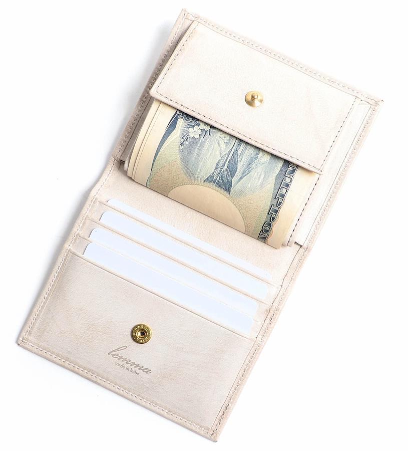 アンティークな雰囲気を持ちながら、質感の変化を存分に楽しめる、革好きの方なら一度は使って欲しいプエブロレザーのお財布。㎜単位での改良を重ね、長い年月を経て完成致しました。お札を差し込むという構造にすることでスペースを有効活用し、お財布全体がコンパクトかつスマートになります。 【省スペースでかさばらないコンパクトさ】一般的な二つ折り財布に比べ、縦幅が最小限に抑えられたサイズ感。手の中での収まりが心地よく、女性の方にもオススメです。サイズ感以上の収納力で、鞄の中がすっきりとします。 【一万円札もしっかり入る札ポケット】コインポケットの裏に差し込み、そのまま蓋で押さえて収納します。折り目も付かず、一枚ずつ数えられて小銭の取り出しまで慌てずにお支払いが可能。スペースを有効活用し、全体のふくらみを軽減させます。 【幅広のカードポケットで取り出しがスマート】使用頻度の高いカードから手前に入れていき、深さのある奥のサブポケットには、免許証など常備カードを5~7枚収納していただけます。手前のポケットには芯材を入れ、金具の衝撃やカード番号の型が生じるのを防ぎます。 【視認性が高く取り出しもスムーズなコインポケット】内装は汚れが目立ちにくい濃茶の綿素材に。芯材を仕込むことで張りのある蓋を設けており、その境にはわずかな段差があるため、手前に少しゆすってもコインが落ちる心配はありません。 【使い込んでも美しく、より魅力が増す】始めの和紙のような質感は使い込むほどに色艶が増します。芯材を3種類、計23パーツから仕立てられた姿は、使用後に生じる型崩れを緩和し、一番の醍醐味であるエイジングを楽しんで頂けます。