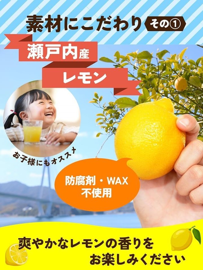 そんな想いに応えるため、このレモネードベースは防腐剤・WAX不使用のレモンを使用し、甘味料、着色料、保存料、防カビ材も一切加えていません。