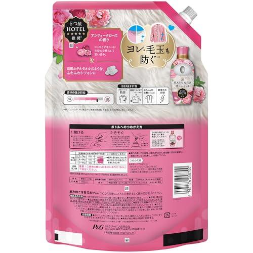 アンティークローズの香り。ローズとピオニーが主役の女性らしく甘い香り。5つ星ホテル推奨*。高級ホテルタオルのような、ふわふわシフォンにヨレ・毛玉も防ぐ*1汗をかいても防臭部屋干しOK*2赤ちゃん用衣類もやわらかく静電気を抑制約6ヶ月分^1。280mL増やした新サイズ^2!*詳しくはウェブへ。 *1 新品から複数回洗濯した場合。当社洗剤比。詳しくはWebへ。*2 いい香り。 ^1 週に約4回、3kgを洗濯(本品20mL使用)で。 ^2 旧レノアハピネスつめかえ(1620mL)よりレノア ハピネス 夢ふわタッチ 柔軟剤 アンティークローズ 詰め替え 大容量 新レノアハピネス夢ふわタッチは、洗濯するたび気になる衣類のダメージまで防ぐ。Tシャツの首元のヨレやニットの毛玉を防いで*、5つ星ホテルも認めたなめらかな肌ざわりが続きます。(*新品から複数回洗濯した場合。当社洗剤比。詳しくはWebへ) レノアハピネス夢ふわタッチは、5つ星ホテルも認めた香りも肌ざわり。レノアハピネス夢ふわタッチで、おうちにいながら5つ星ホテルの贅沢を体験してください。 秋冬は乾燥しやすいから、ニットのゴワゴワ・チクチクが気になりがち…新レノアハピネス夢ふわタッチなら、衣類をシルクの様になめらかに洗い上げるから、ニットももうチクチクしない* (*コットンニットで検証) 最高量*1の柔軟成分を配合しているから、5つ星ホテルタオルのような肌ざわりを83%が実感*2しています。(*1 過去10年レノアハピネスにおいて、*2 「華やかに香るアンティークローズの香り」使用。P&G消費者調査[n=108]による) レノアハピネス夢ふわタッチなら5つ星ホテルも認める贅沢な香りが1週間*楽しめます。(*保管状態にて)華やかに香るアンティークローズの香りは、ローズとピオニーが主役の女性らしく甘い香りで、しあわせな気分にみたされます。 レノアの柔軟剤は、ドラム式洗濯機や自動投入洗濯機でもお使いいただけます。詳細の使用方法や使用量は、製品裏の説明をご覧ください。 (#lf)(#lf)(#lf)商品購入前に、ストア紹介ページをご確認ください。