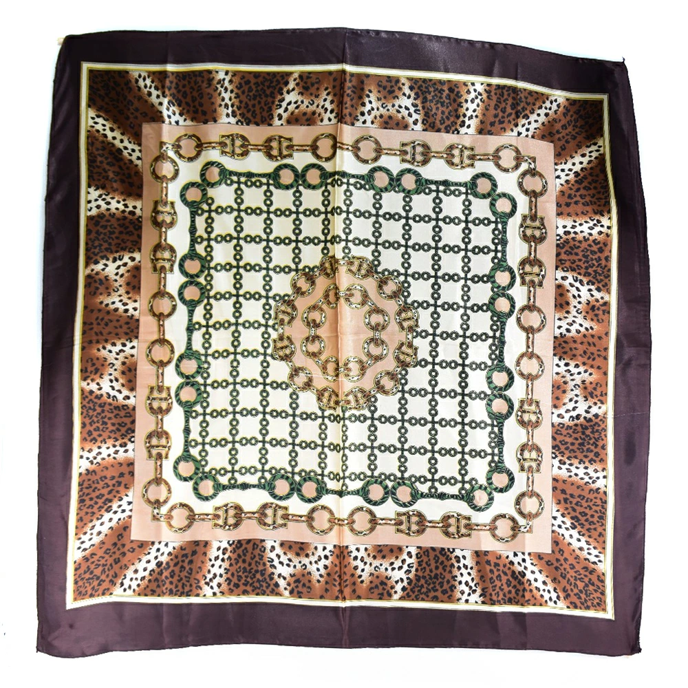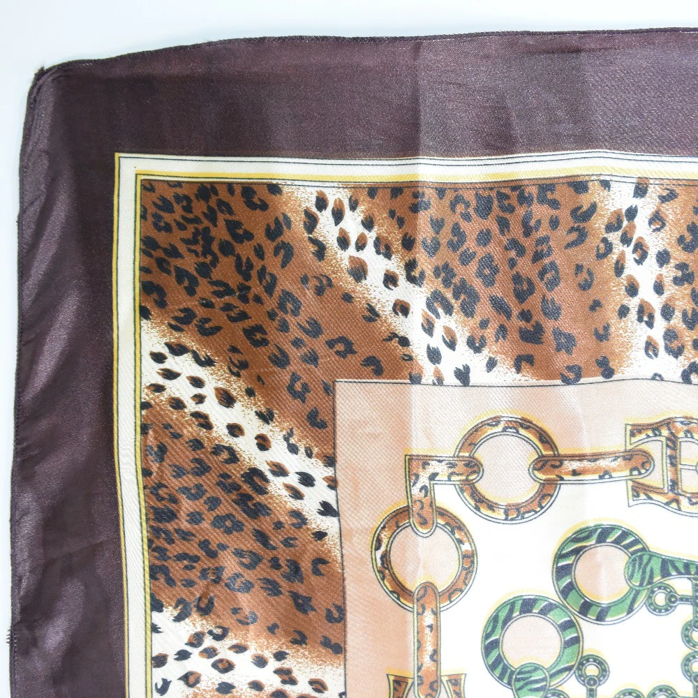 Leopard print silk scarf, brown, women's, pre-owned, A-rank
