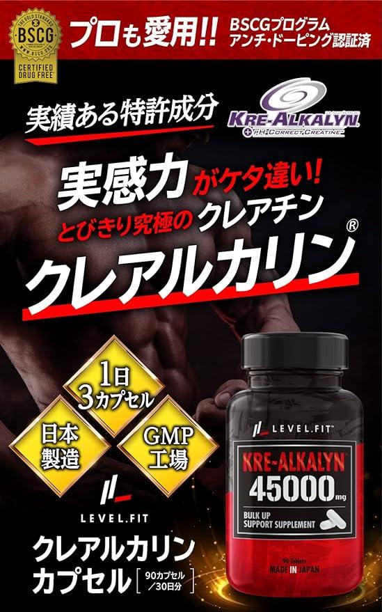 LEVEL FIT クレアルカリン 高純度クレアチンカプセル 日本製(アンチドーピング認証)90カプセル(30日分)