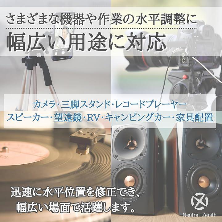 「幅広い用途に対応」円形水準器は、カメラ、三脚スタンド、レコードプレーヤー、スピーカー、望遠鏡、RV、キャンピングカー、家具配置、3Dプリンター、事務機器、建設・大工道具、工場機械など、さまざまな機器や作業の水平調整に最適です。