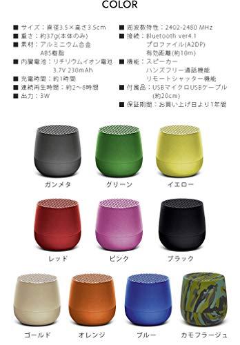 【ブランド】LEXON / レクソン 【デザイナー】Manuela Simonelli(マヌエラ・シモネリ) Andrea Quaglio(アンドレア・クアーリョ) 【サイズ】直径3.5×高さ3.5cm【重さ】約37g 【素材】アルミニウム合金、ABS樹脂 【内臓電池】リチリウムイオン電池、3.7V、230mAh (電池の交換はできません)【充電時間】約1時間 【連続再生時間】約2~8時間(接続方法、音量などにより前後します) 【出力】3W 【周波数特性】2402-2480MHz【接続】Bluetooth ver4.1 プロファイル(A2DP) 有効距離(約10m) 【機能】スピーカー /ハンズフリー通話機能 /リモートシャッター機能【付属品】USB-マイクロUSBケーブル(約20cm) 【保証期間】お買い上げ日より1年間 【パッケージ】化粧箱入り 幅7.5×奥行4×高さ8.5cm 約65g ※パッケージは予告なく変更する場合があります。
