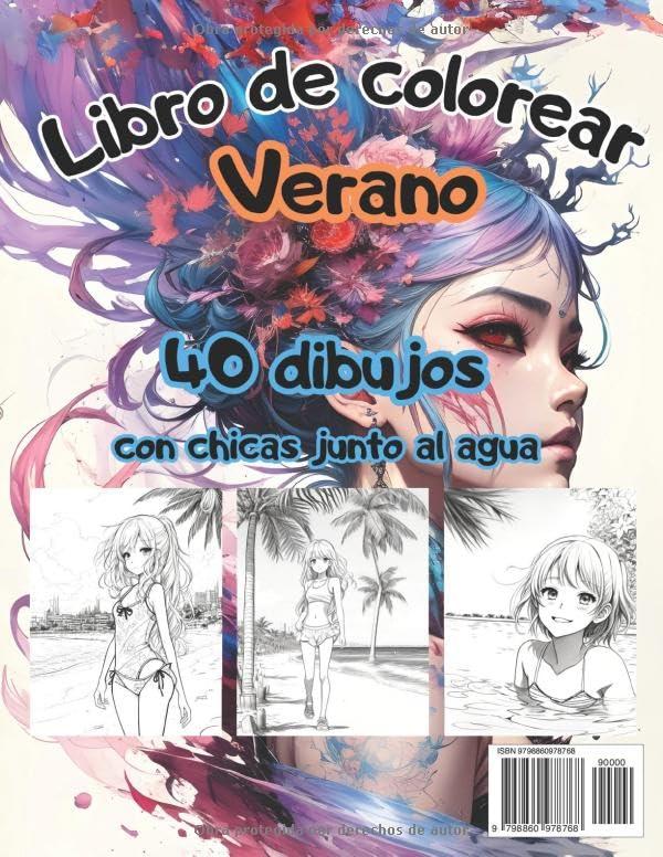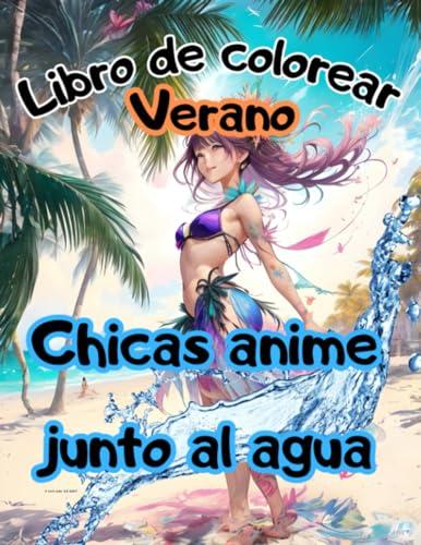 LIBRO DE COLOREAR PARA VERANO: 40 dibujos con chicas anime junto al agua