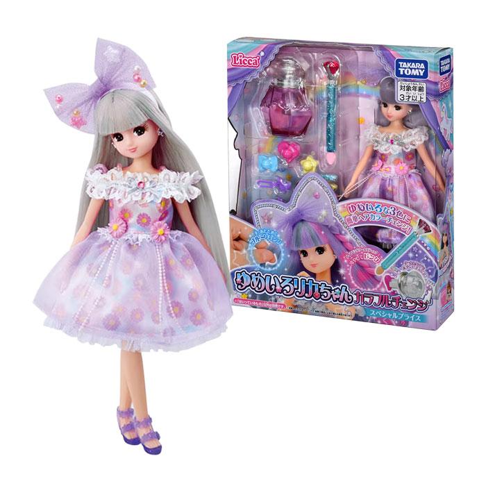 髪色がゆめいろな3色に簡単にカラフルチェンジできるリカちゃんです。