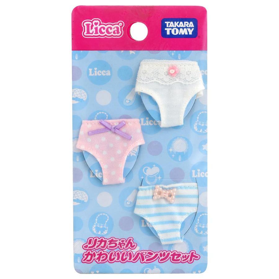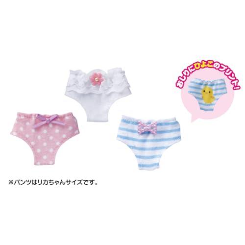この商品はリカちゃんサイズです。ママ、ミキちゃん、マキちゃんなど大きさの異なるドールは着用できません。リカちゃんのかわいいパンツ3枚セットです。[セット内容]パンツ( ホワイト)(1),パンツ( ピンクドット)(1),パンツ( 水色ボーダー)(1)(より) (C)TOMY 対象年齢:3才以上