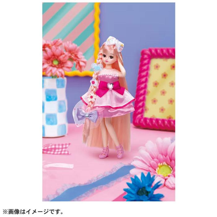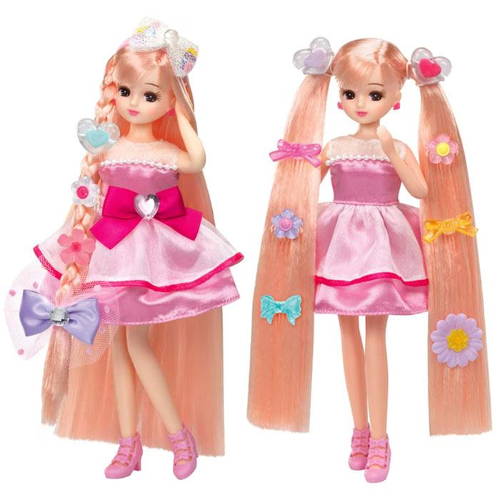 ピンク色の約20cmのスーパーロングヘアのリカちゃんに、