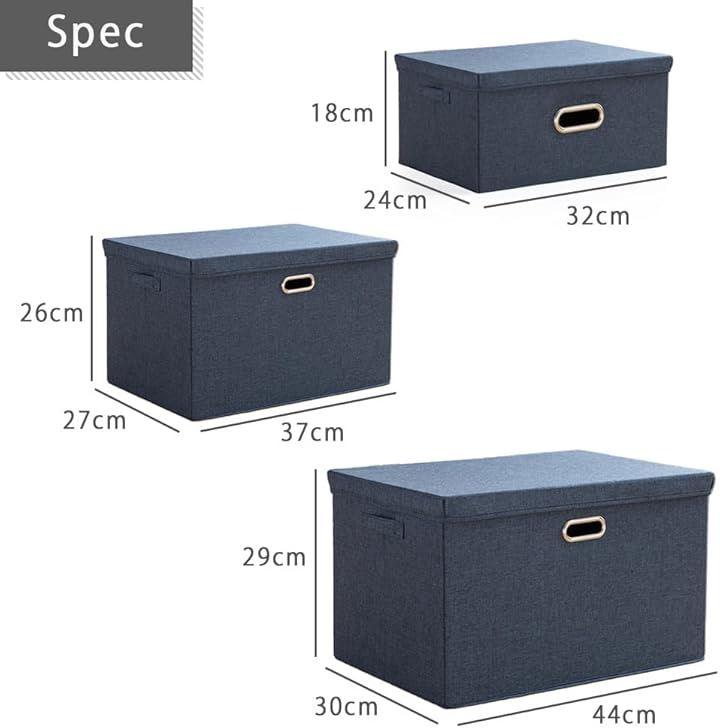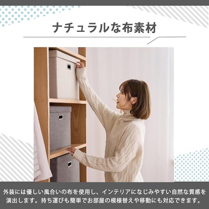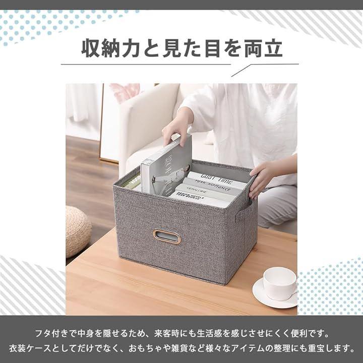 「商品内容」 ふた付き収納ケース サイズ:画像参照 材質:布製品 カラー:グレー、ブラック、ブルー