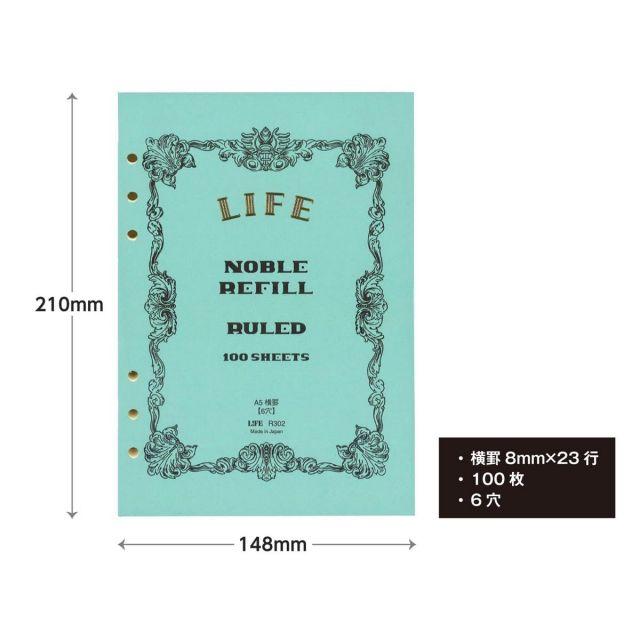 Life Noble System Planner Refill, Horizontal Ruled, A5, R302