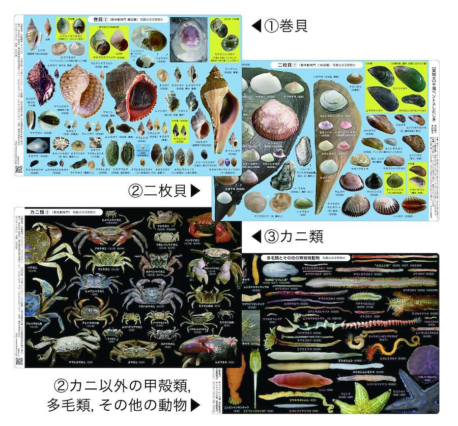 ★実物大干潟ベントス図鑑したじき vol.1巻貝編,vol.2二枚貝編,vol.3カニ編,vol.4甲殻類多毛類その他の動物編の4枚がセット
