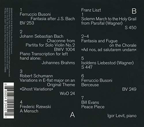2018 release. Igor Levit's album Life, one that is highly personal for him, is an imaginary recital with a vast emotional range - from tender intimacy (Schumann's "Ghost" Variations, Bill Evans's "Peace Piece") to the sublime and monumental (Liszt-Busoni's "Ad nos"). This celebrated pianist and impassioned intellectual poses as a spirited yet profound guide to regions of music that ask the big questions of human existence - questions about meaning and permanence, inner peace, memory and redemption. On Life, Levit reflects at the keyboard on the experience of loss, hovering between grief and despair, resignation and solace. He has chosen works whose bleak grandeur and melancholy beauty have occupied him for years. Each of them is a tribute to the virtuosic potential of the piano. Poetic moments of quiet contemplation confront life-affirming, highly sensual music of immediate spellbinding physicality. Levit's deliberately subjective selection extends from 1720 to 2012, from Bach to Frederic Rzewski. LIFE effortlessly crosses borders between eras, styles and genres, offering a multitude of new discoveries. More than ever before, you appreciate the individuality and immense curiosity of an artist who has already set standards with some of the supreme masterpieces of Bach and Beethoven.