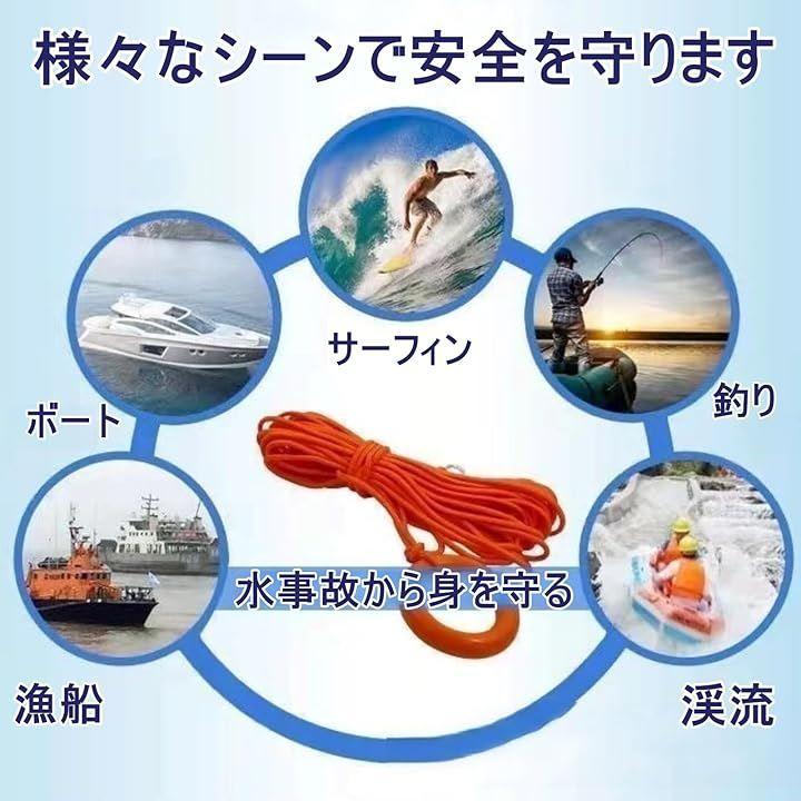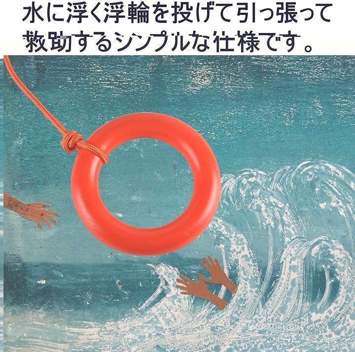 浮輪部分を投げて溺れた人にリング部分を投げて救助する、シンプルな救命ロープです。