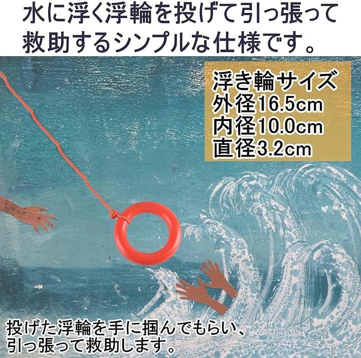 浮輪部分を投げて溺れた人にリング部分を投げて救助する、シンプルな救命ロープです。