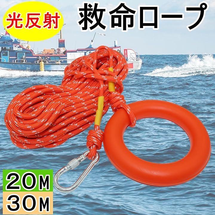 ロープの厚さ:8 mm, ロープの長さ:20mまたは30m /浮き輪サイズ:外径16.5cm, 内径10.0cm, 直径3.2cm/素材:強化ポリプロピレンフィラメント糸/反射タイプ