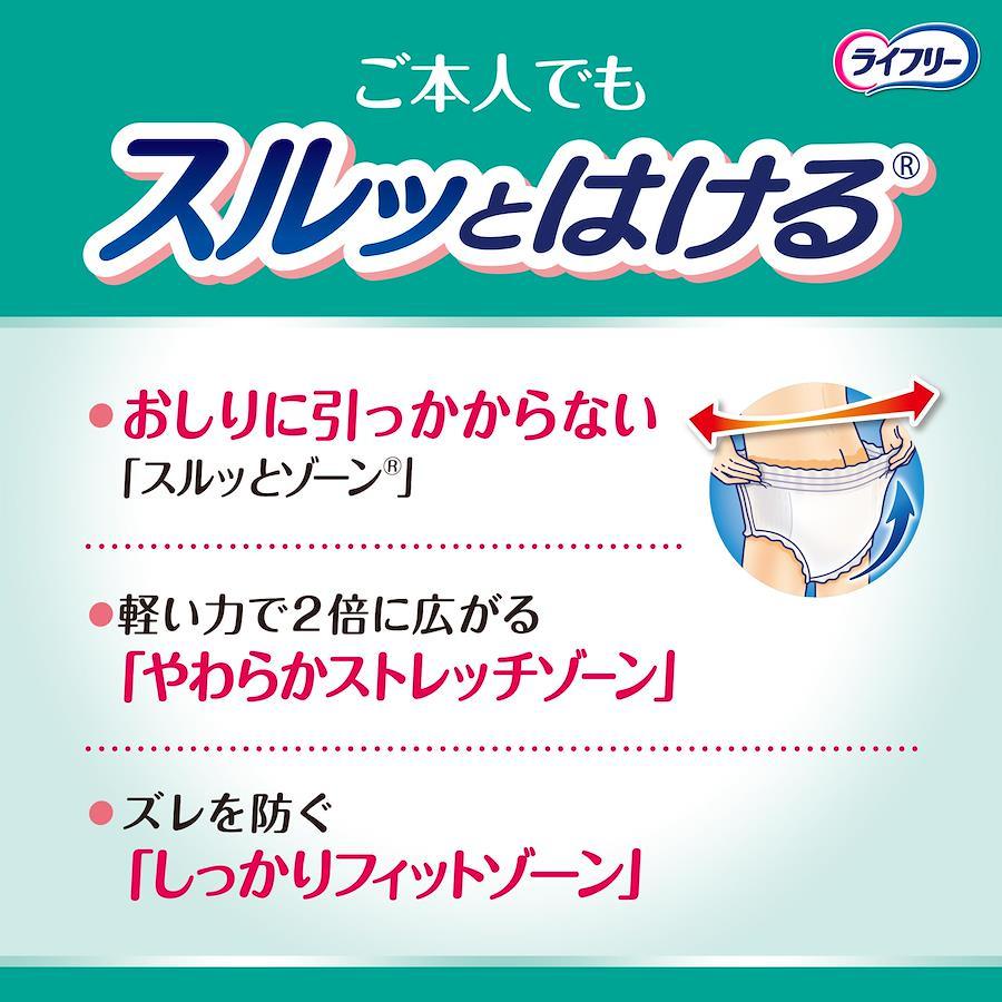 軽い力で2倍に広がるのでスルッとはけるパンツです。背中・足ぐりピタっとギャザーが背中・足ぐりにピタッとフィットするのでスキマモレを低減。ご本人の力で両脇が破けてサッと脱げる機能で交換しやすい。さらに2023年の改良で、はいている間のしめつけ感を低減する、やわらかいふんわりウエスト搭載。股下すっきり設計でごわごわしないはき心地を実現! 大人用おむつ