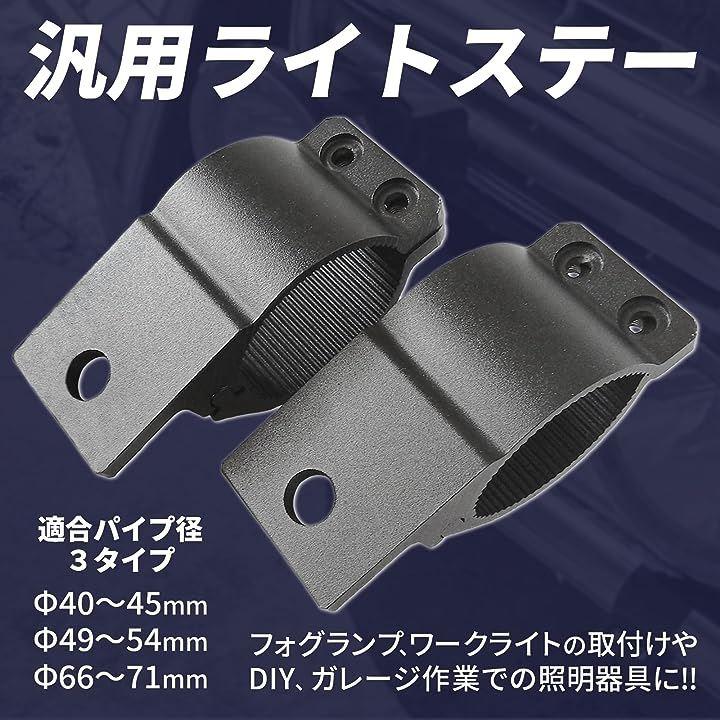 ・バンパーやグリルガード、ルーフラックなどのバーやパイプに設置できるアルミ合金製の汎用ライトステー2個セットになります。