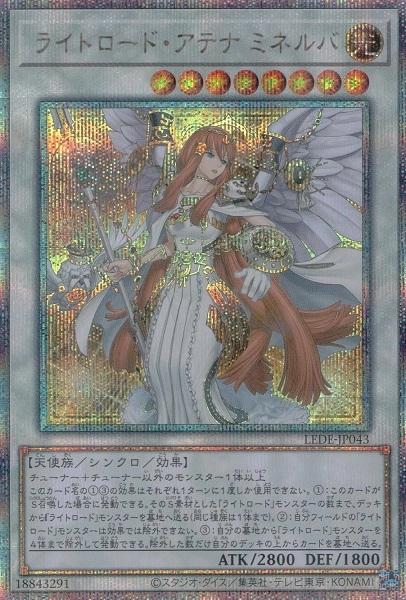 ■搭載パック:[LEDE]LEGACYOFDESTRUCTION■収録:基本パック■■レアリティ:QCシークレット■種類:シンクロモンスター■属性:光■種族:天使族■星(レベル、ランク):8■攻撃力:2800■守備力:1800■リンク:‐■リンク方向:‐■ペンデュラムレフト:‐■ペンデュラムライト:‐■■シリーズ:第12期■効果テキスト:チューナー+チューナー以外のモンスター1体以上このカード名の①③の効果はそれぞれ1ターンに1度しか使用できない。①:このカードがS召喚した場合に発動できる。そのS素材とした「ライトロード」モンスターの数まで、デッキから「ライトロード」モンスターを墓地へ送る(同じ種族は1体まで)。②:自分フィールドの「ライトロード」モンスターは効果では除外できない。③:自分の墓地から「ライトロード」モンスターを4体まで除外して発動できる。除外した数だけ自分のデッキの上からカードを墓地へ送る。■ペンデュラムテキスト:‐