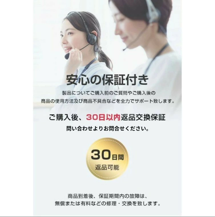 | 品質保証 | 万が一商品に不具合があった場合、是非ご連絡くださいませ。無料交換や返金など対応致します。 |