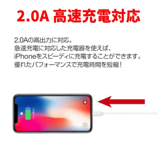 | 仕様 | ・急速充電対応 ・データ転送可能 ・Lightning to USB |