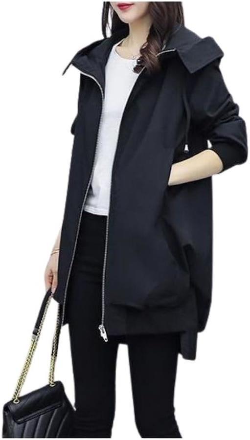 Lightweight and comfortable hooded blouson jacket for women. Mid-length, zip-up, flattering, casual, elegant, and simple.