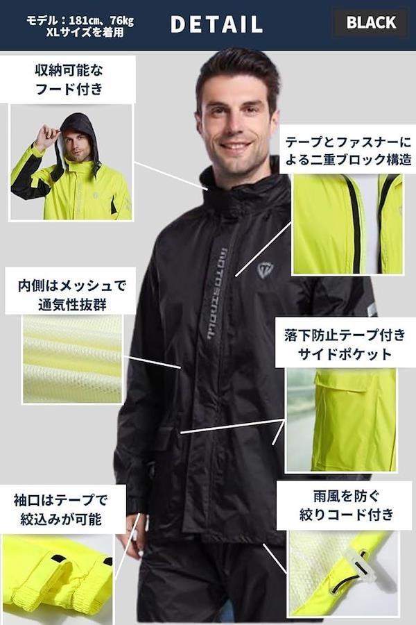 「利用シーン」バイク、サイクリング、子供の送迎、登山、釣り、アウトドア、キャンプ、スポーツ、防災など 「機能」*防水(耐水圧13,000mm)、防風、防寒 「カラー」ブラック、グレー、イエロー 「重量」ジャケット約350g、パンツ約300g 「メイン素材」ポリエステル 「サイズ」M~3XL <ジャケット> 着丈 /肩幅/胸囲 /袖丈 [M] : 69 / 47 / 112 / 60.2 [L] : 71.5 / 48.5/ 116 / 62 [XL] :74 / 50 / 120 / 63.8 [2XL] :76.5 / 51.5 / 124 / 65.6 [3XL] :795 / 53 / 128 / 67.4 <パンツ> ウエスト /着丈 [M] : 80 / 99 [L] : 84 / 102 [XL] :88 / 105 [2XL] :92 / 107 [3XL] :96 / 109