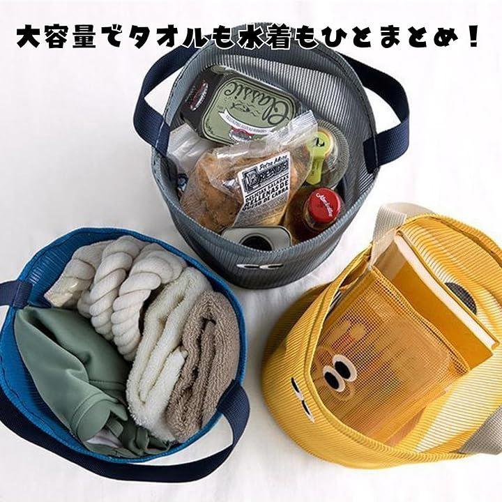 通気性の良いメッシュ素材で、濡れたタオルや水着も気にせず収納できます。